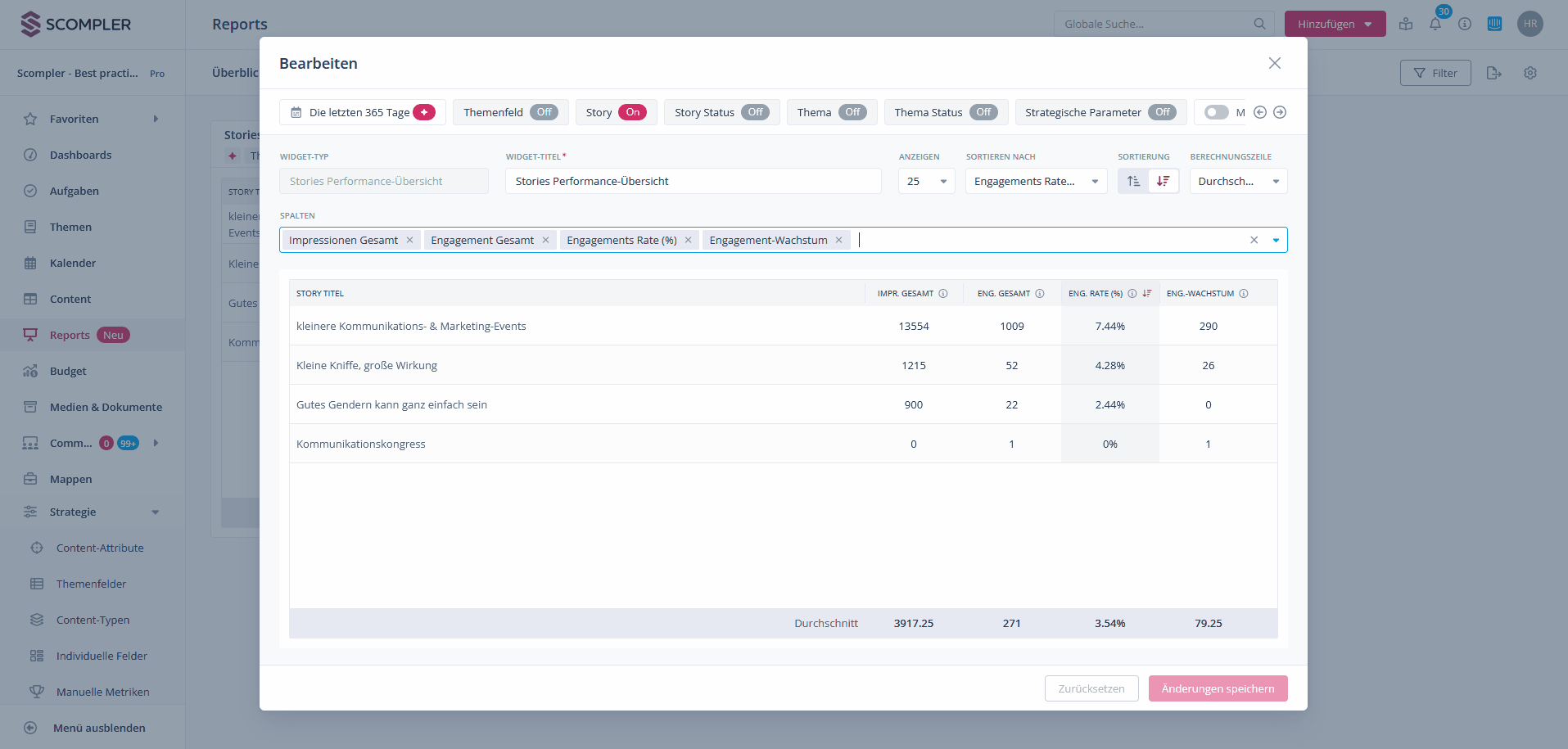 Wir haben den Reports-Bereich verbessert. Sie können jetzt Tabs auf privat stellen oder diese mit bestimmten Kollegen und Teams teilen. Ebenso ist es möglich, manuelle Metriken in den Reports-Widgets anzuzeigen und auszuwerten. Dies ermöglicht eine individuellere Darstellung der gewünschten Daten.
