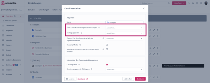 Tipp: Wenn Sie Änderungen für einen Kanal aktualisieren wollen, löschen Sie die vorhandene Verbindung NICHT, sondern gehen die Schritte zur Kanalanbindung einfach noch einmal durch. Die bestehende Verbindung wird dann aktualisiert, doch bestehende Verknüpfungen in Ihren Beiträgen bleiben erhalten.