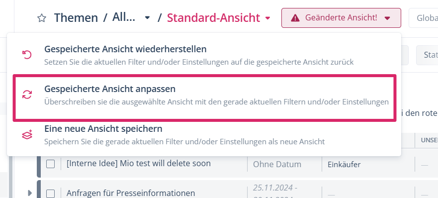 Hinweis: Vergessen Sie nicht, die nun um die Massenbearbeitungsfunktion erweiterte Ansicht zu speichern, da Sie sonst den Vorgang beim nächsten Mal wiederholen müssen.