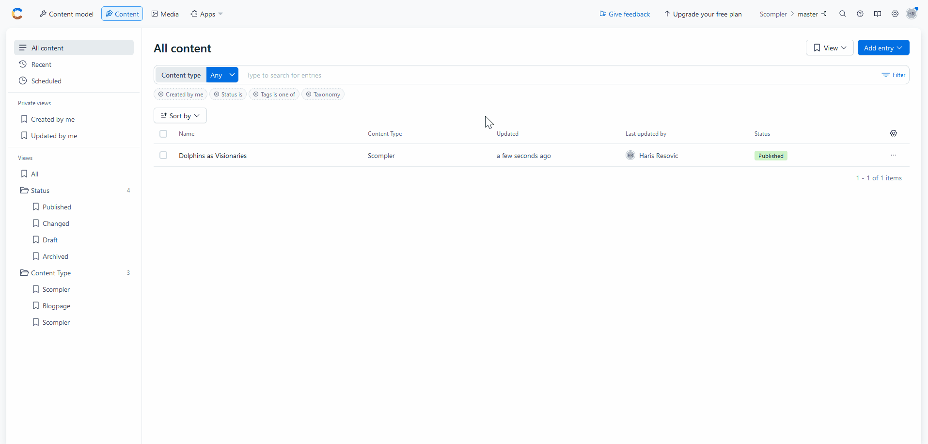 Scompler automatically adopts the status changes of your Contentful entries, which are managed in Contentful. These are the currently available statuses:
