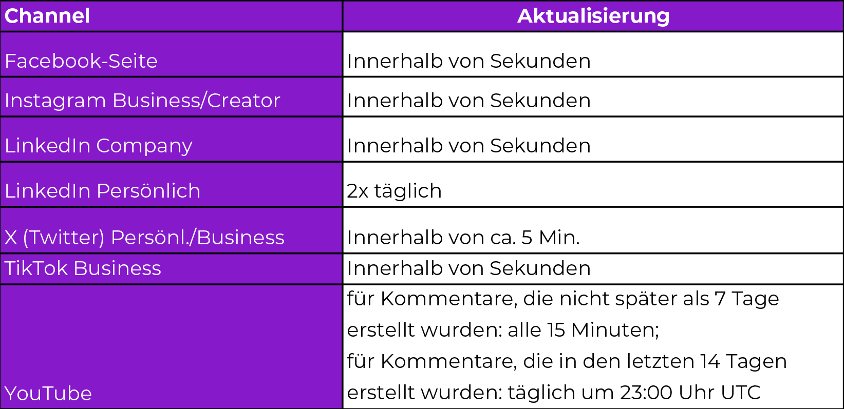 Erfahren Sie, wie schnell die Daten im Community Management für integrierte Kanäle synchronisiert werden.