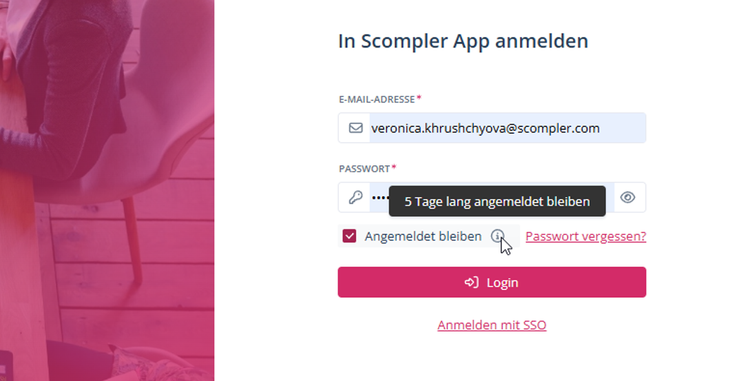 Scompler-Sitzungen lassen sich jetzt noch sicherer und komfortabler gestalten - denn von nun an haben Sie beim Login in Scompler die Möglichkeit, eine "Angemeldet-bleiben-Checkbox" zu aktivieren. Ist die Checkbox nicht aktiviert, endet die Scompler-Sitzung nach 12 Stunden - ideal für öffentliche oder geteilte Geräte. Ist sie dagegen aktiviert, verlängert sich die Sitzung auf fünf Tage.