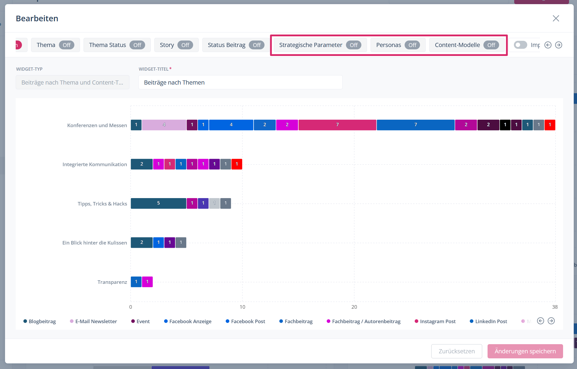 Ebenso haben wir neue Filter für Reports-Widgets. Sie können nun nach Content-Modell, Team oder Persona filtern, um die Auswertung noch präziser zu gestalten.