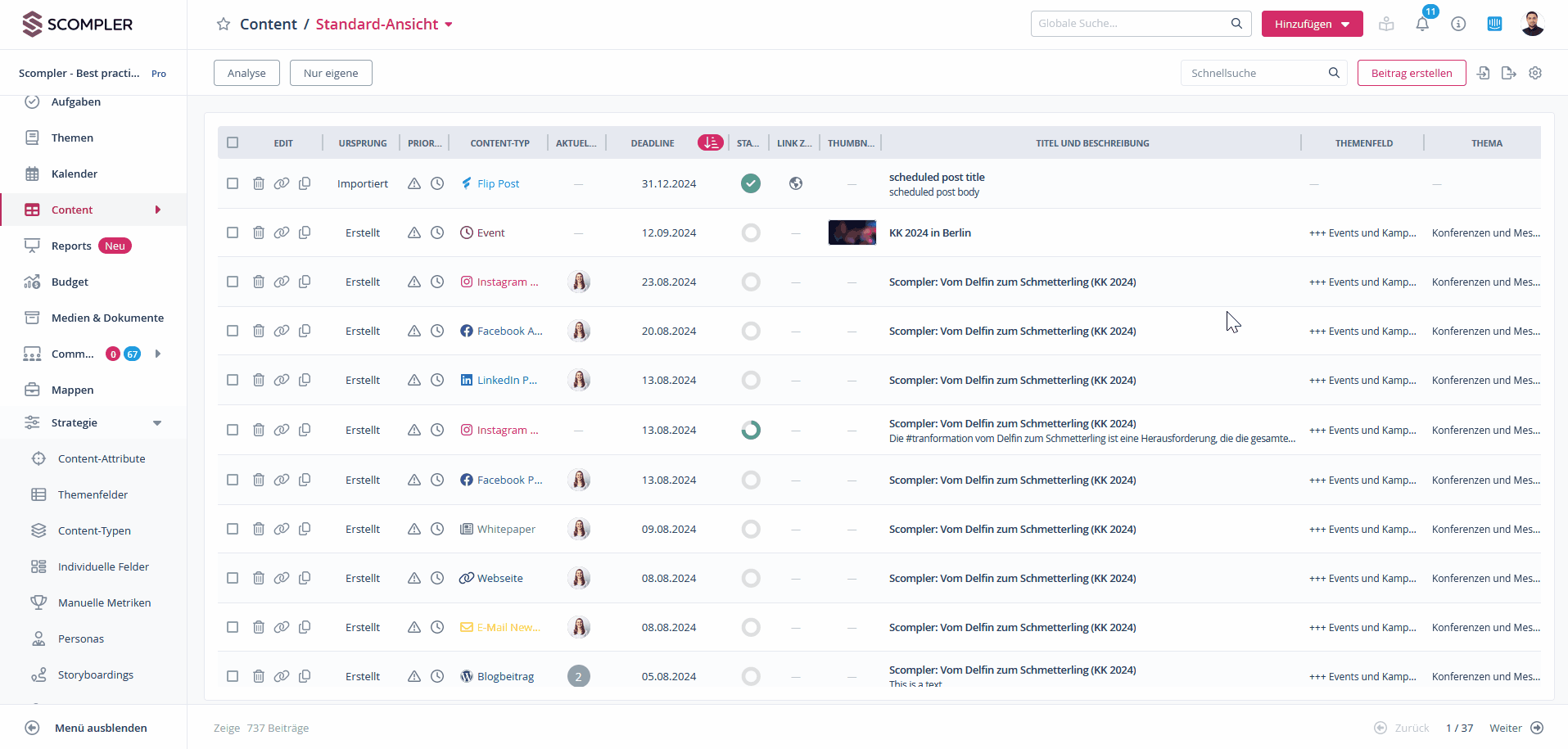 Tragen Sie individuelle Erfolgs-Daten für Ihre Beiträge in Scompler ein, um einen Gesamtüberblick über die Performance Ihres Contents zu erhalten.