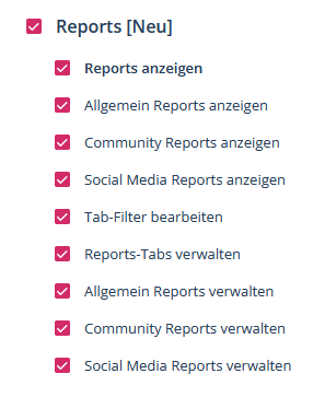HINWEIS: Wenn Sie keinen Reports-Bereich im linken Navigationsbereich sehen, muss die Funktion für Ihre Nutzergruppe freigeschaltet werden. Dies erfolgt durch die Admins oder Projekteigentümer in den Projekteinstellungen.