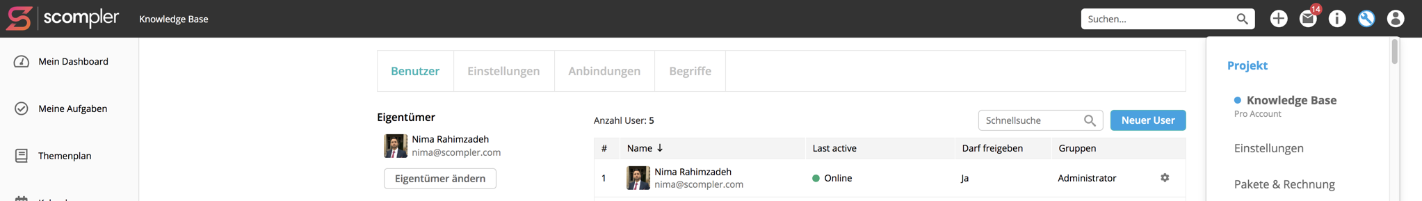 Der Nutzer, der dieses Projekt erstellt, wird als Projekteigentümer hinterlegt.