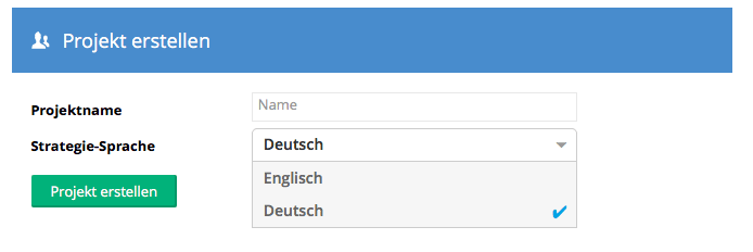 Das schlagende Herz von Scompler ist der Strategie-Bereich. Hier können Sie wählen, ob die dokumentierte Strategie auf Deutsch oder auf Englisch hinterlegt werden. Wenn das Projekt international ausgelegt ist, Sie mit nicht-deutschsprachigen Kollegen / -innen in scompler arbeiten oder Briefings auf Englisch erstellen möchten, empfehlen wir Ihnen „Englisch“ auszuwählen. Dies lässt sich später nicht mehr ändern.