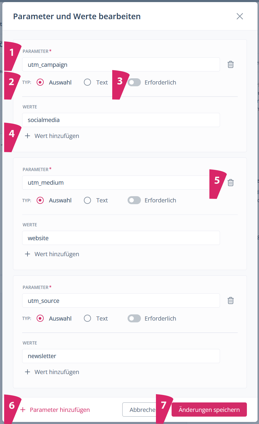 Mit Klick auf das „X“ entfernen Sie Parameter samt Wert