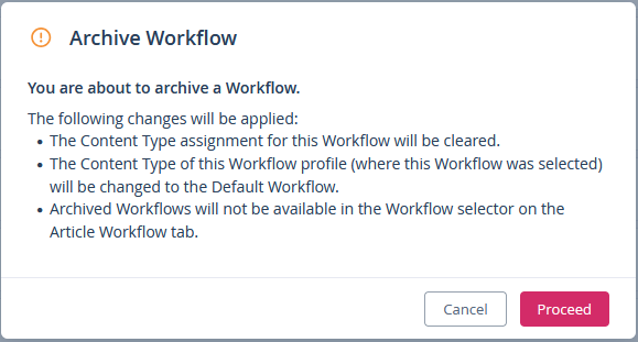 NOTE: Any new articles of content types previously linked to the archived workflow will be assigned to the standard workflow.