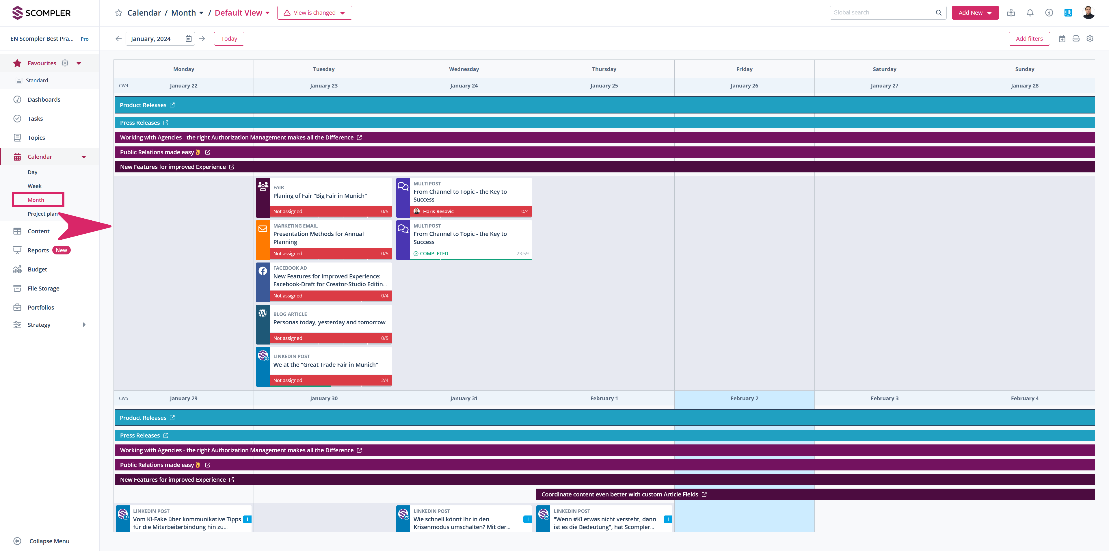 In the Scompler calendar view, you can not only easily get an overview of your activities and add entries directly. The high-performance calendar offers a wide range of options to see exactly what you need at any given time. The clever combination of filters and views allows you to create your perfect planning tool. You can also display stories in all calendar views with different data options and periods.