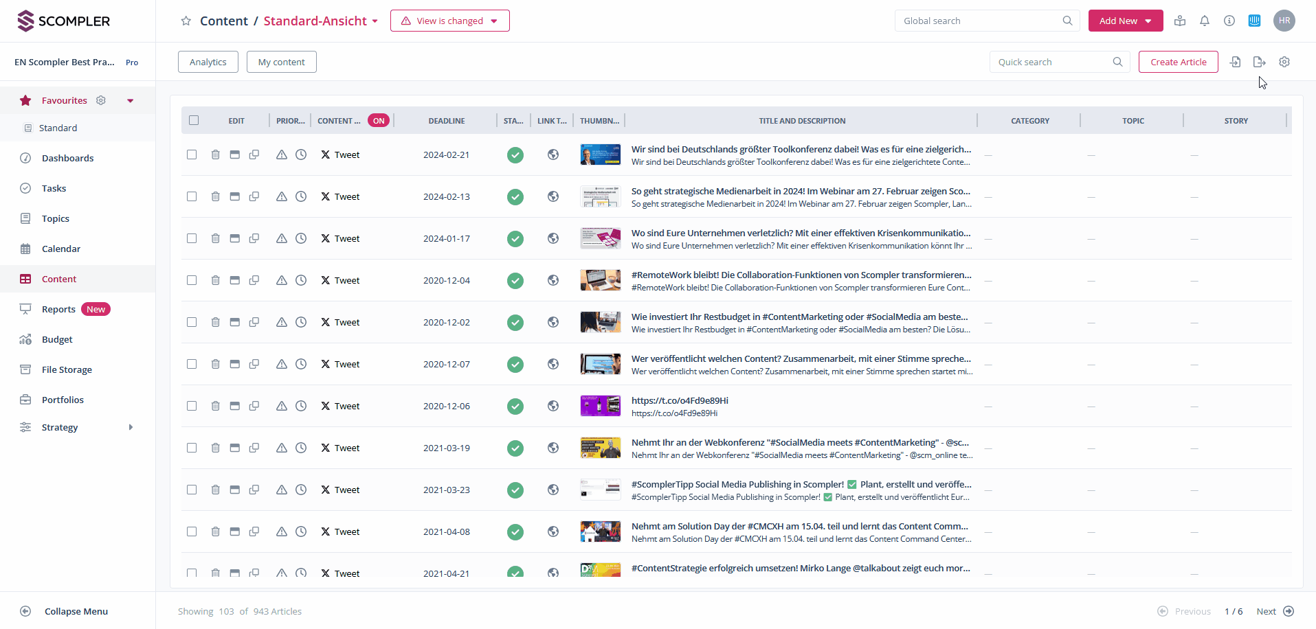 NOTE: Only the articles currently displayed will be exported. You can customize your view by adding the required columns to the.