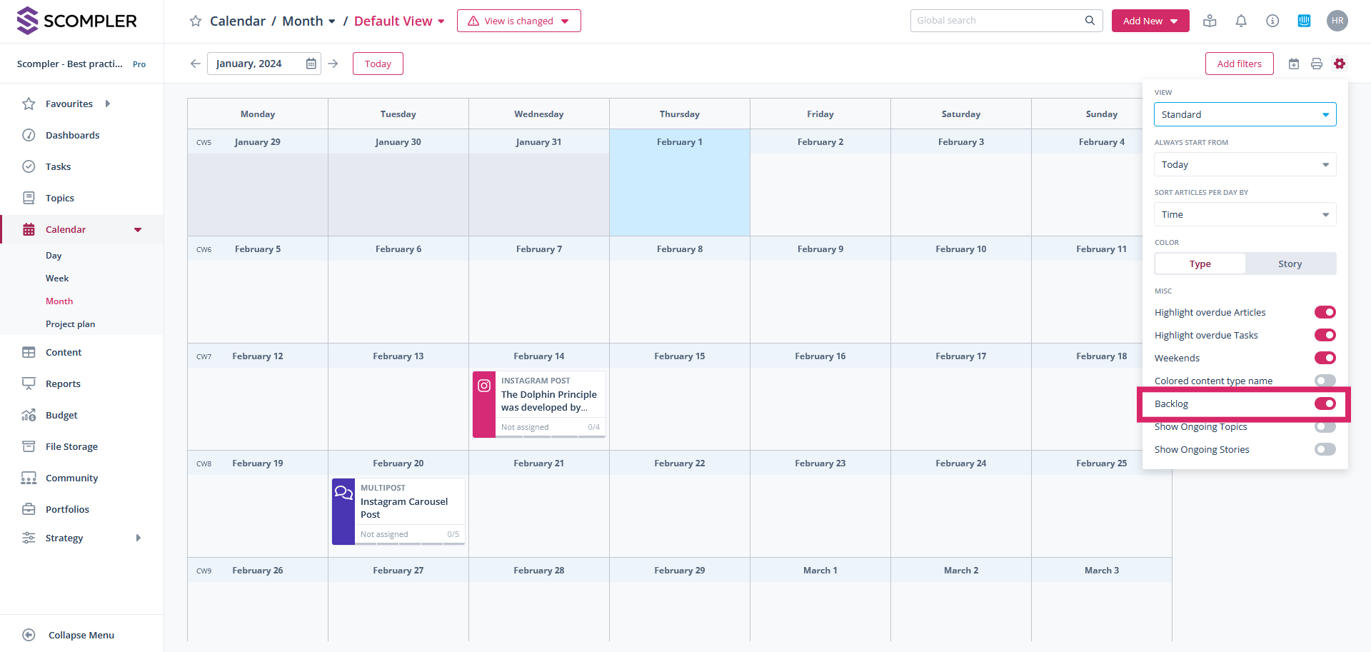 Note: In the backlog you will find all articles that do not yet have a deadline. You can simply drag them from here to the desired publication date.