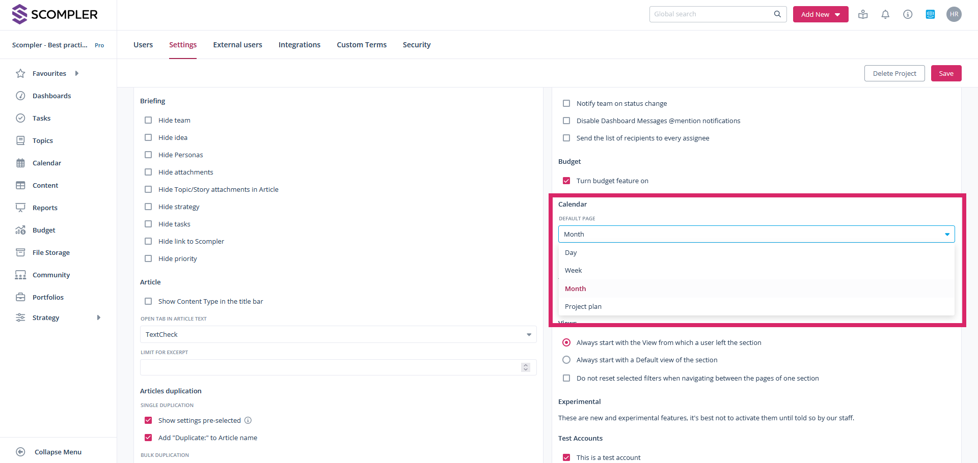 To set which calendar type is displayed as the default, you must select the default calendar from the drop-down menu in the “Calendar” section of the project settings.