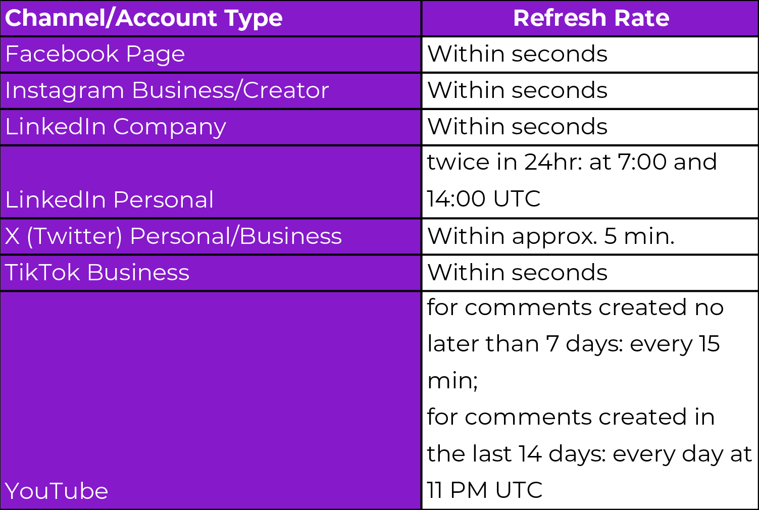 Find out how quickly data in the Community Management feature syncs for integrated channels.