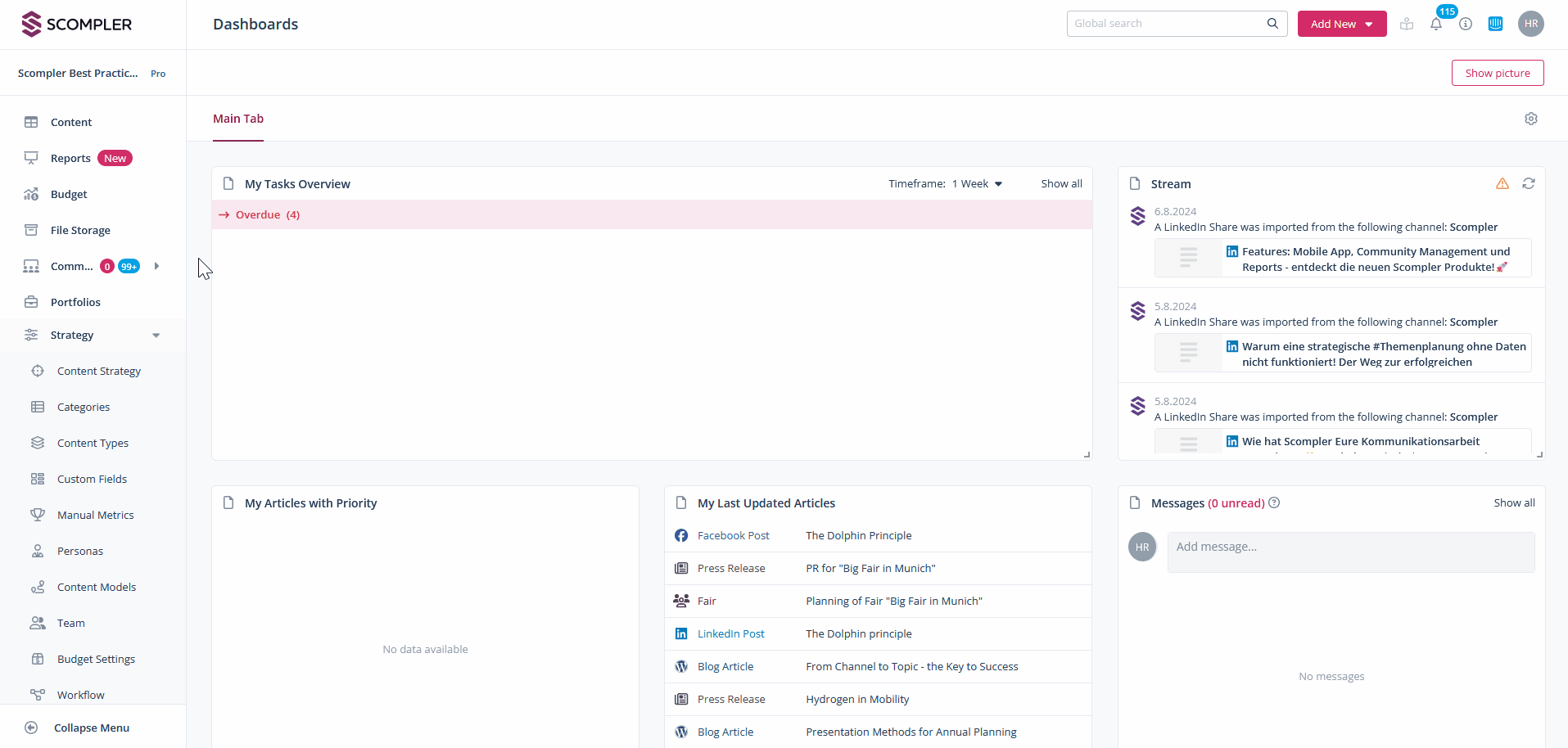 A new column filter is now available in the Content area: “Source of Post”. Here you can filter articles by “Externally Published”, “Imported” or “Published” directly via Scompler.