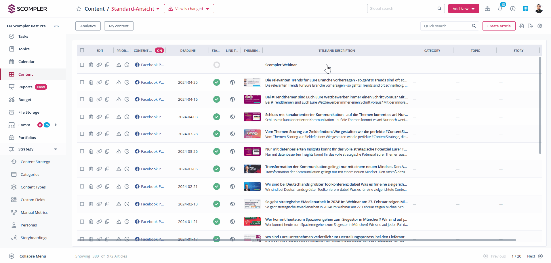 Enter individual success data for your articles in Scompler to get an overall view of the performance of your content.