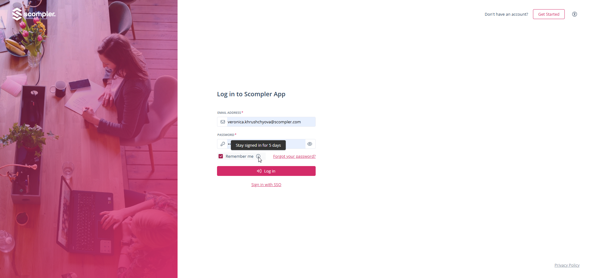 However, this procedure is largely unnecessary on private and secure devices, which is why Scompler offers a “Stay logged in” function when logging in: Simply check the relevant box and your session will remain active for five days, unless you log out manually or delete your browser cookies beforehand.