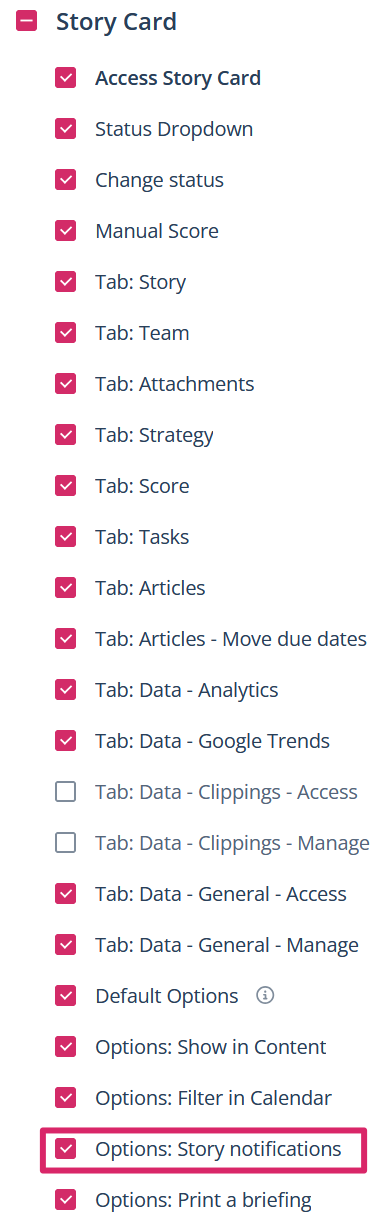 This setting should be configured by an administrator who has access to the user groups. To activate notifications for specific stories, enable this function in the desired user groups: