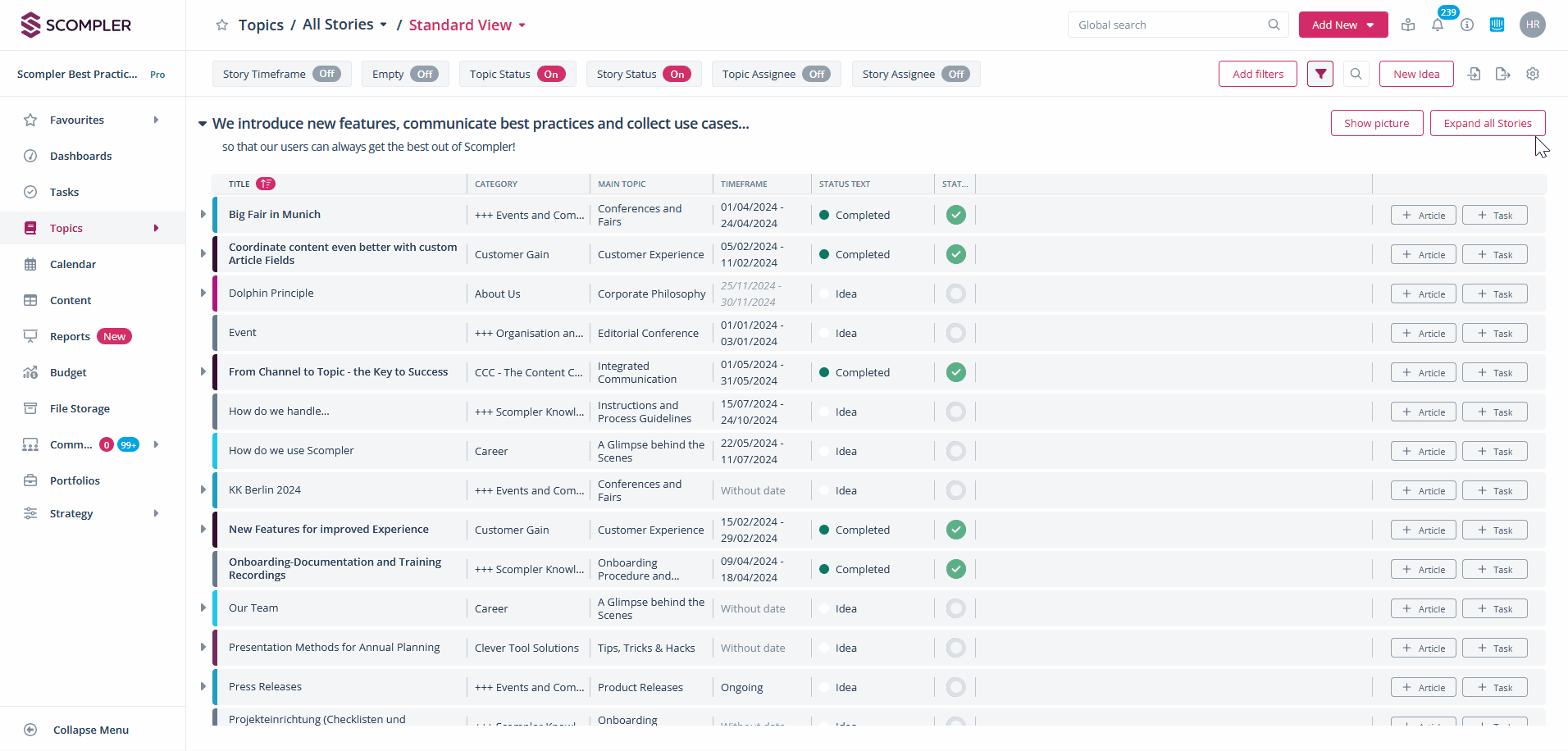 When planning your communication activities, it may be necessary to stay up to date on the content of individual stories in order to recognize and successfully eliminate any conflicts that arise.