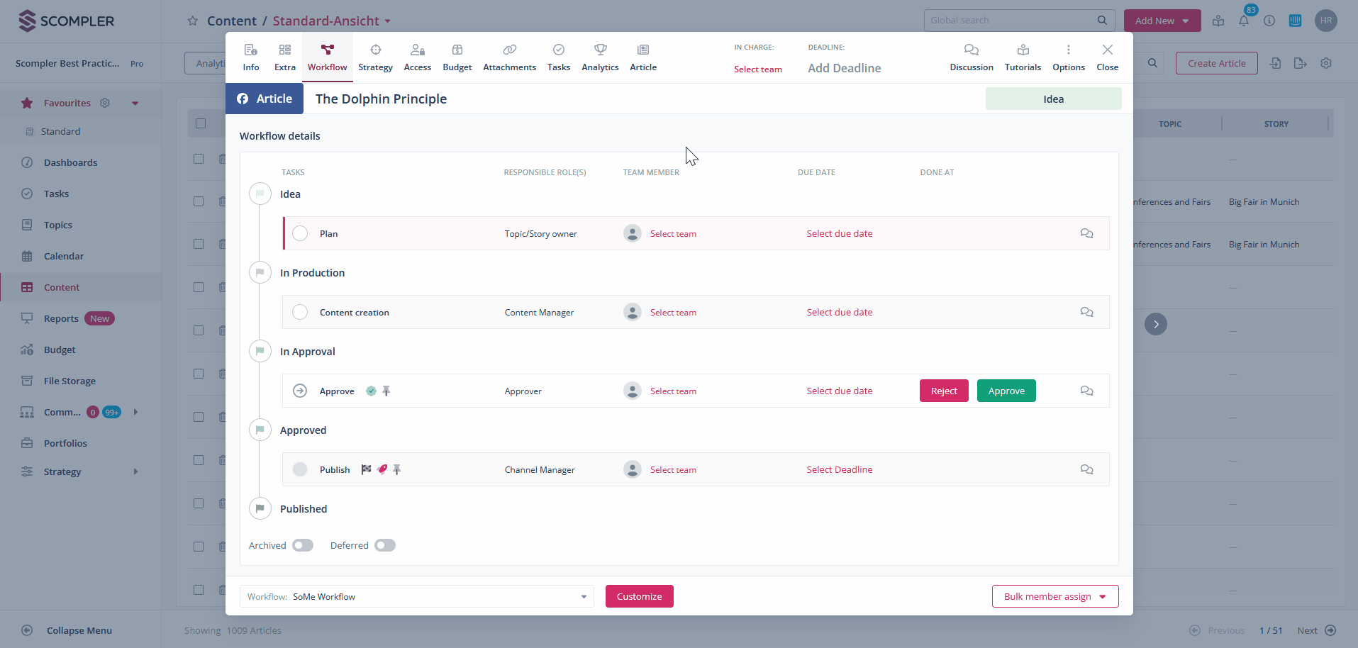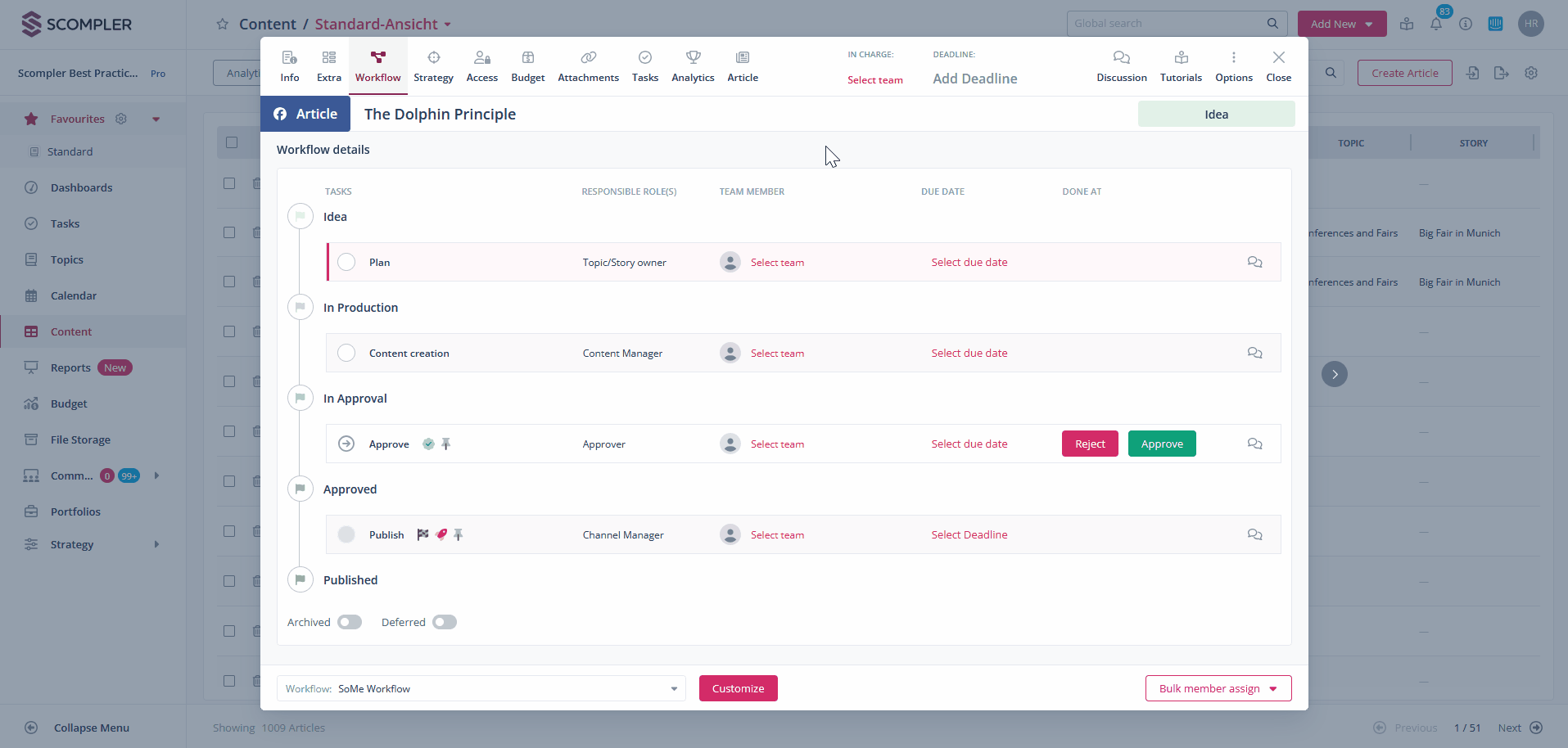 Plan your content creation efficiently with the Scompler workflow. Keep an eye on your deadlines and easily coordinate tasks in your team.